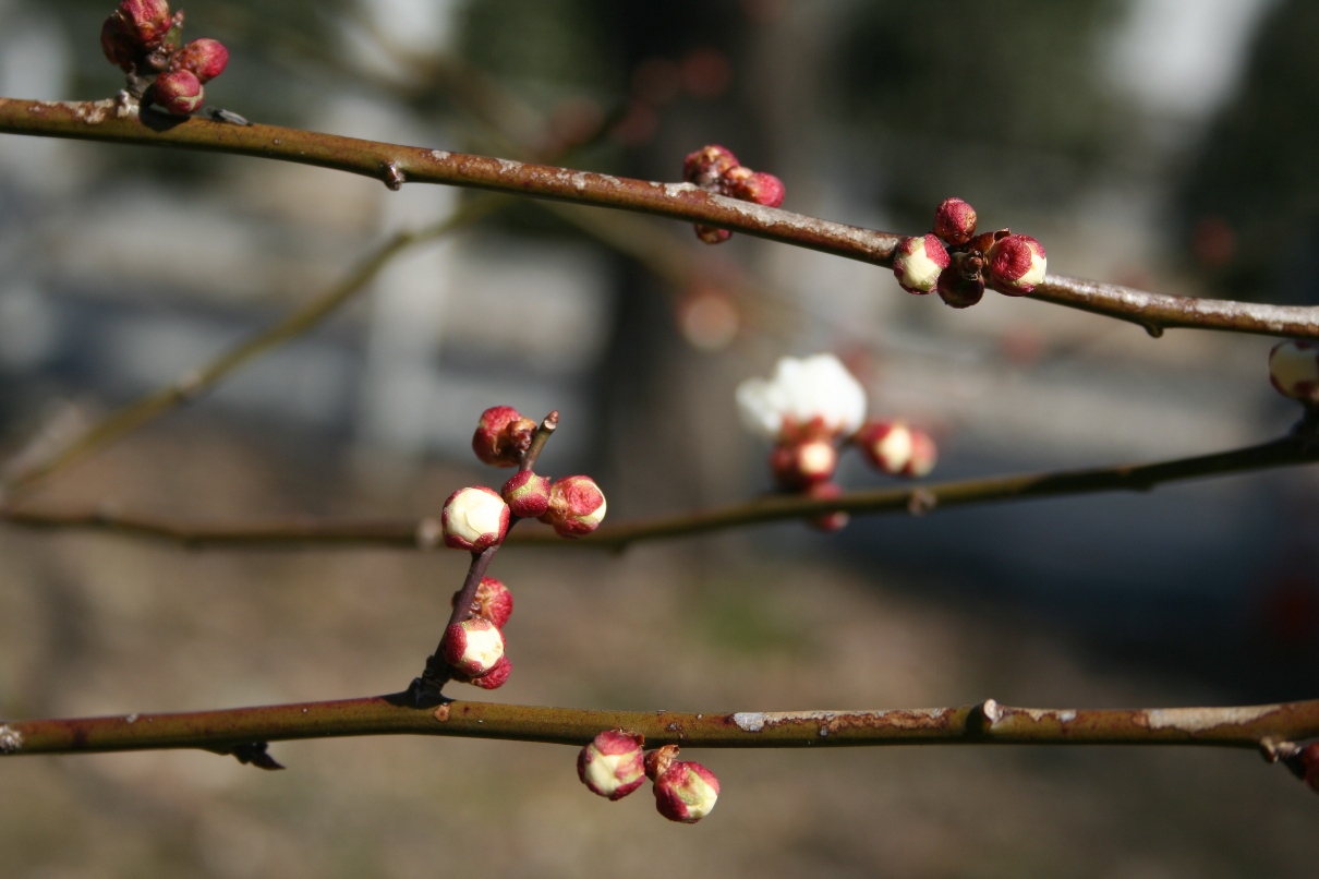レジーナ側にあるサクラの樹のつぼみはまだまだ硬く、これからの成長が楽しみです。