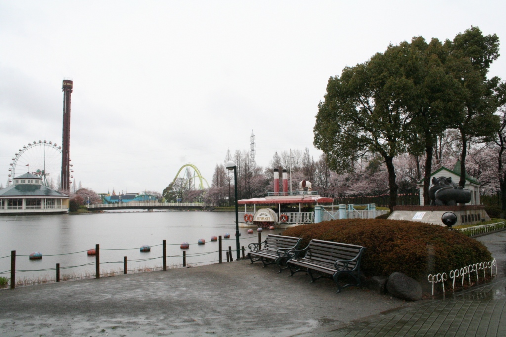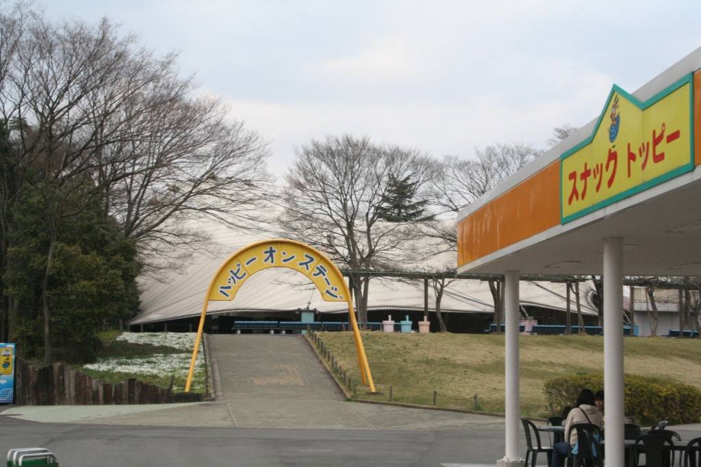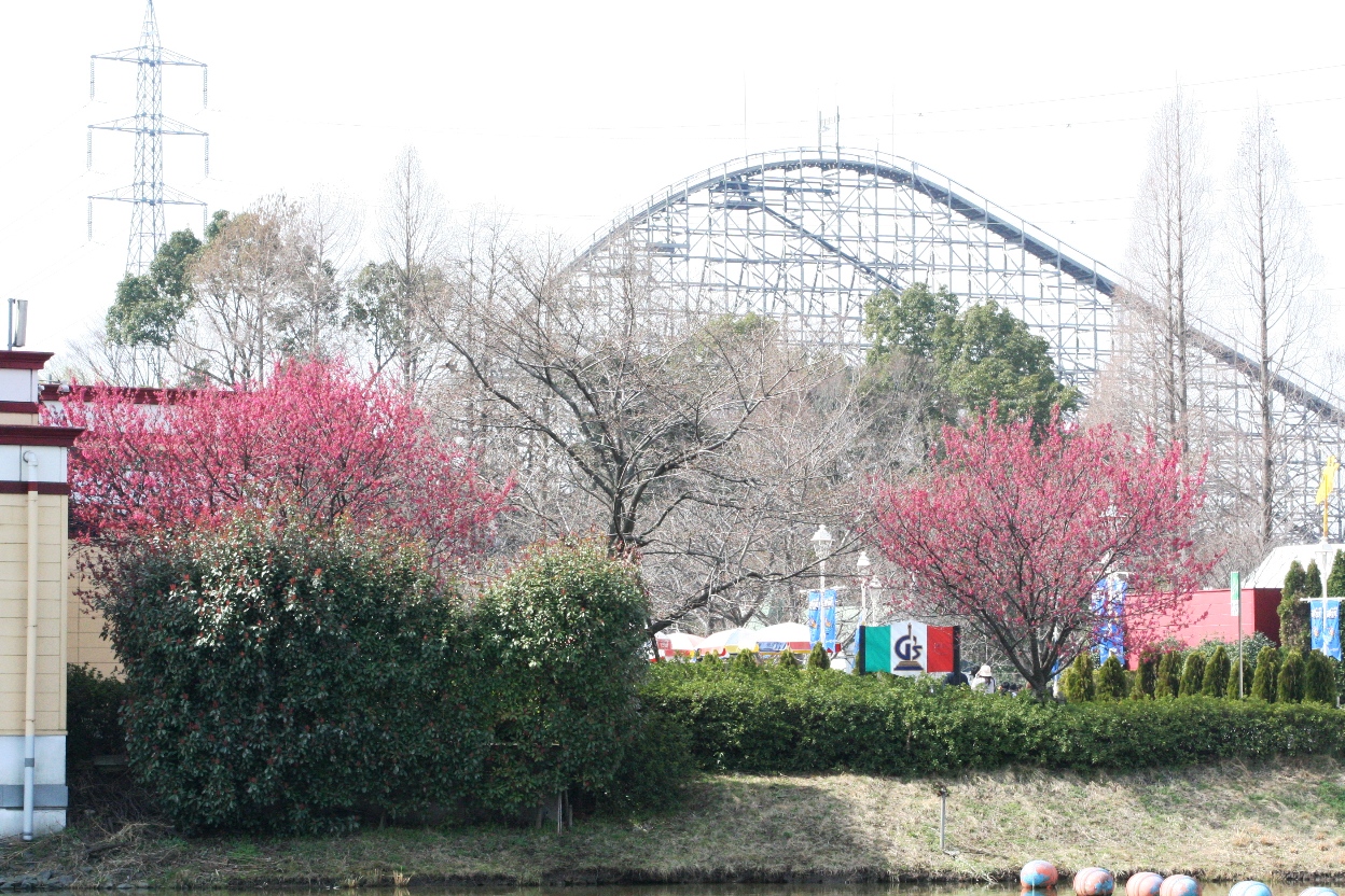 G’sレストラン前のカンヒザクラ(寒緋桜)もほころびました。トッピー広場の真ん中にあるモモもつぼみがピンクに染まっています。どちらも20日(祝)あたりが見ごろになるでしょう。モモの花はほかにはハッピーオンステージにむかう浮き橋のたもとにもあります。