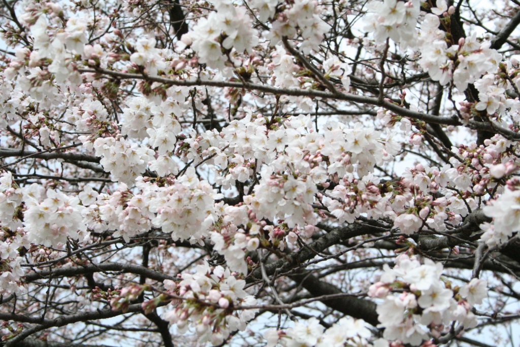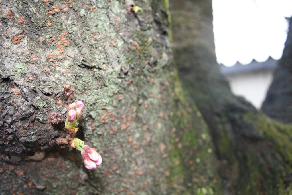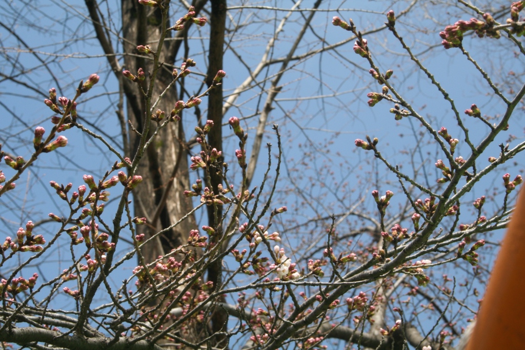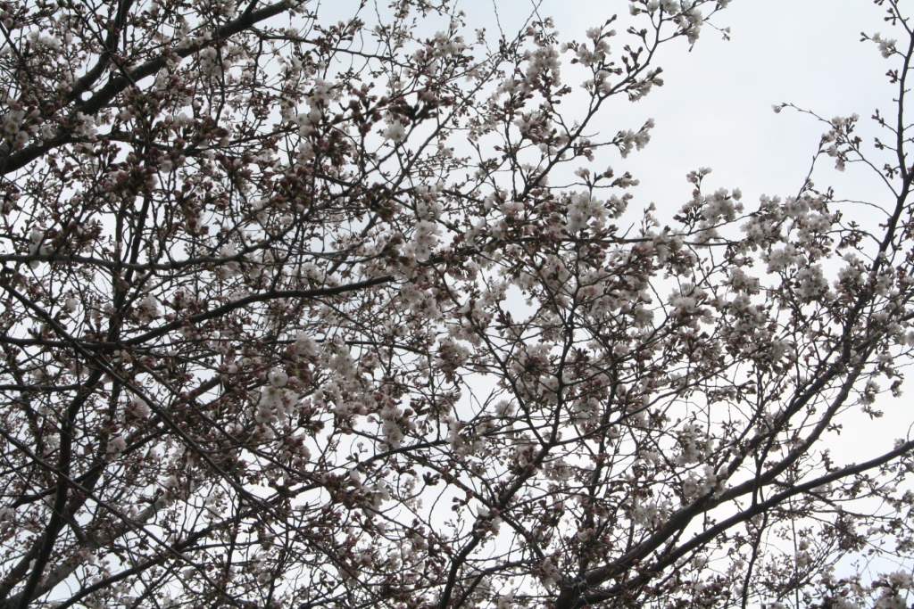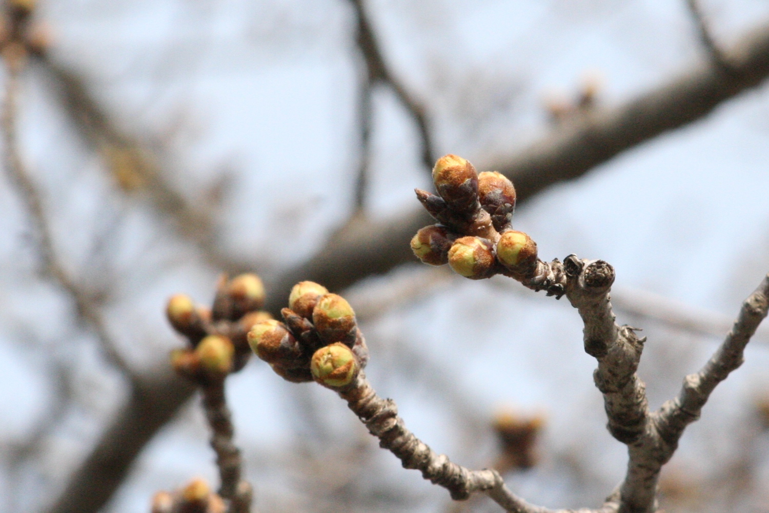 ソメイヨシノはまだ部分的にポツポツ花を咲かせている程度でまだまだ蕾が目立ちます