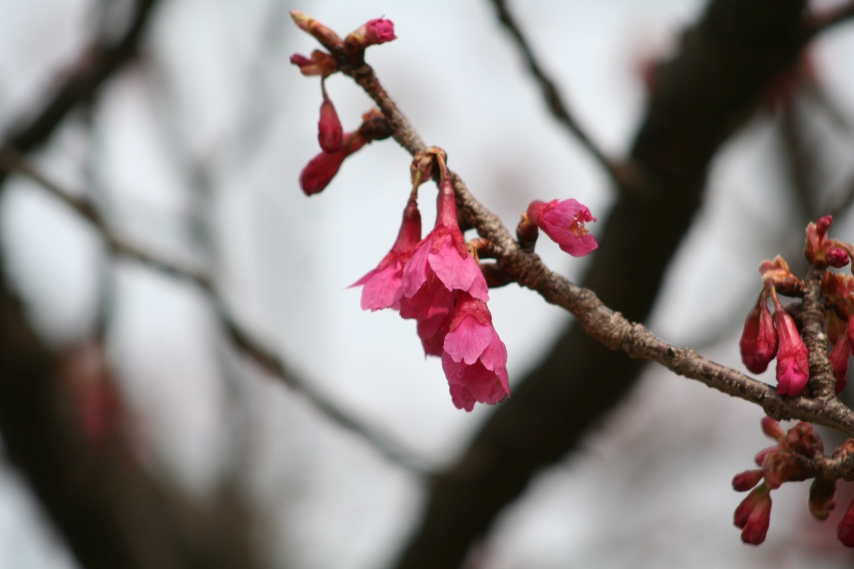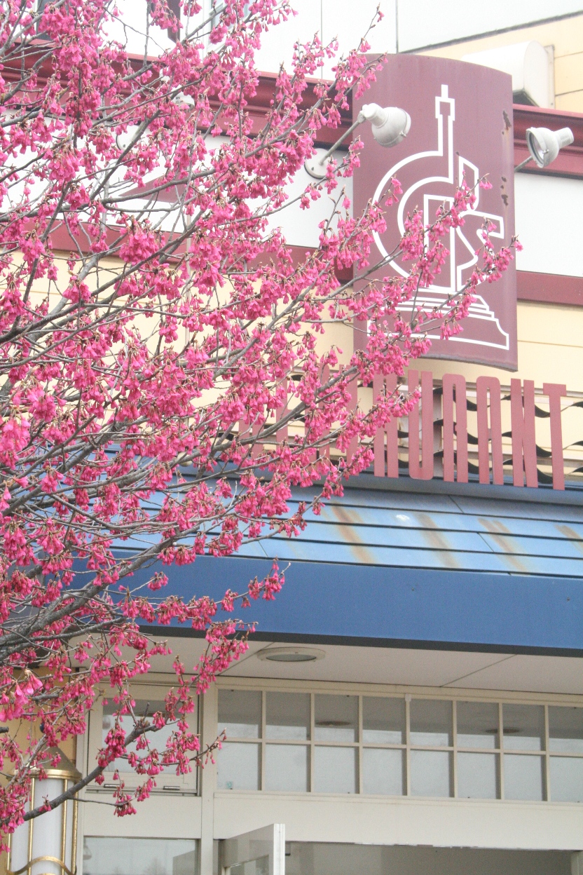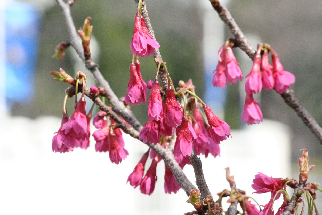 ↓の写真はG-MAX付近喫煙所に咲く寒緋桜を撮影したものです(遠景)・・・