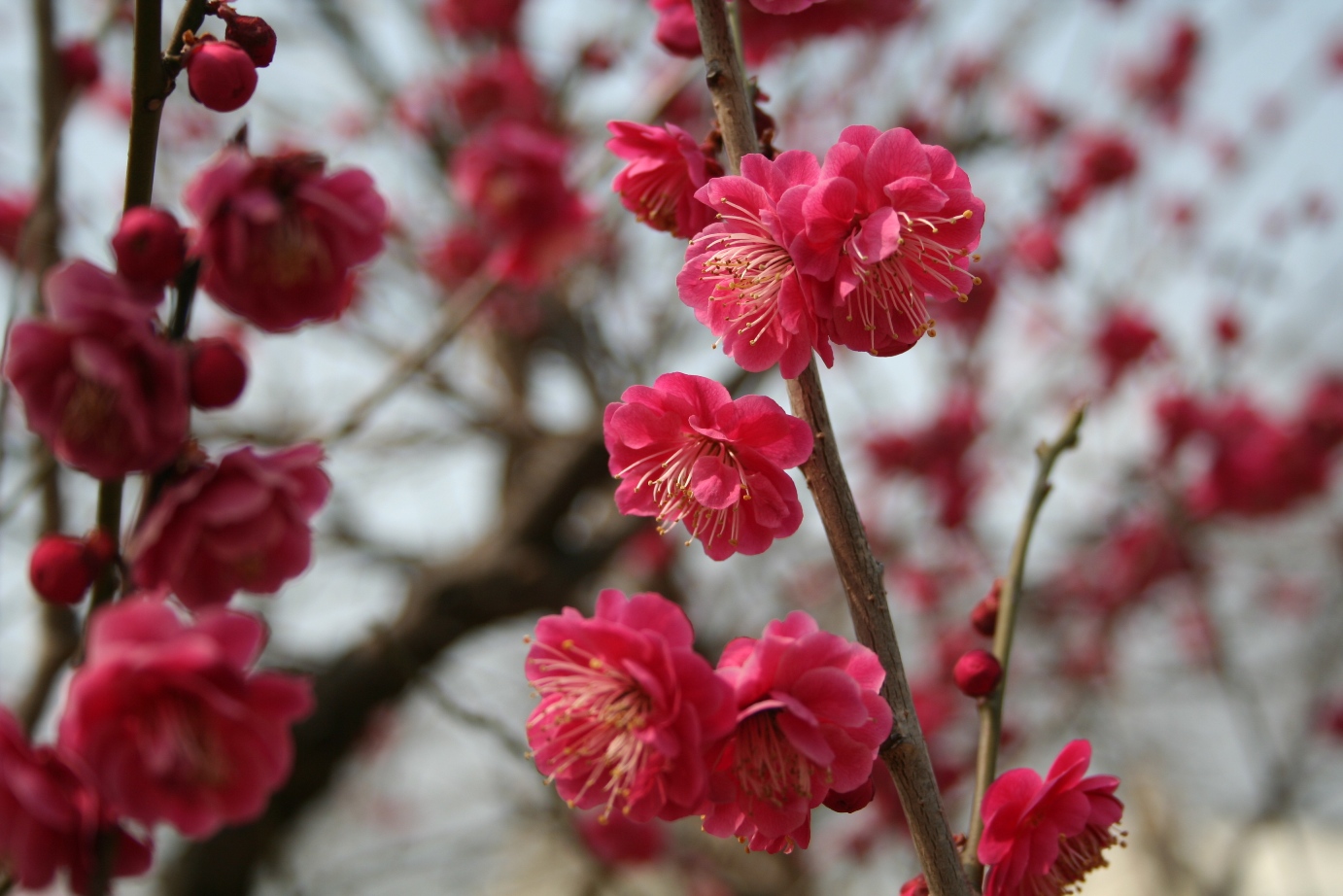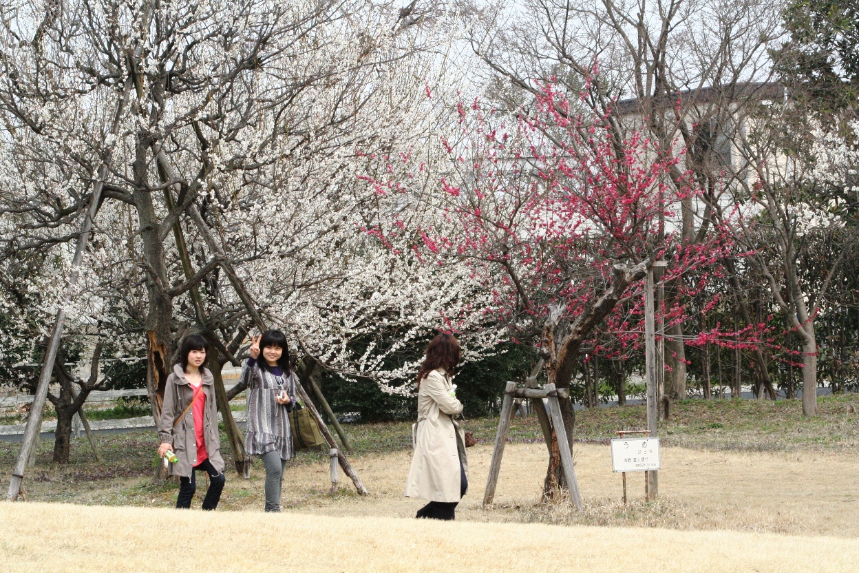 ウメ3・16ウメは満開です。ハッピーオンステージの溝端淳平さんのトークショーにあつまった女性たちが花のそばで写真を撮っていました。