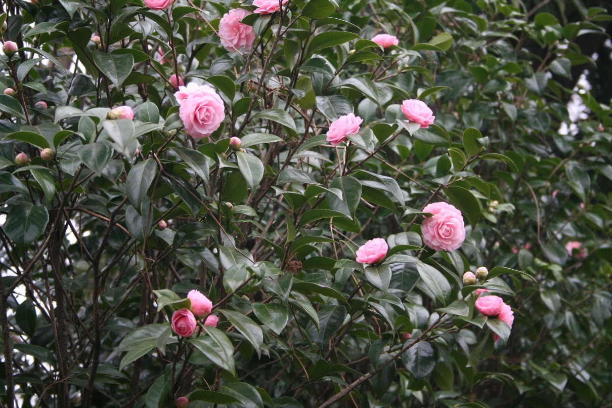 トッピー広場のモモもすっかり開花しました。園内にたくさんあるツバキも次々に開花しています。