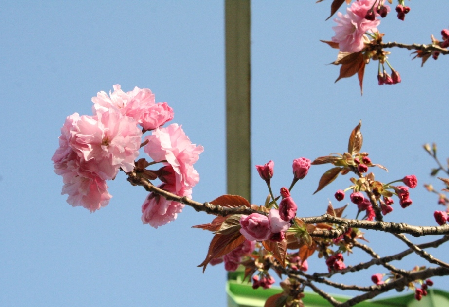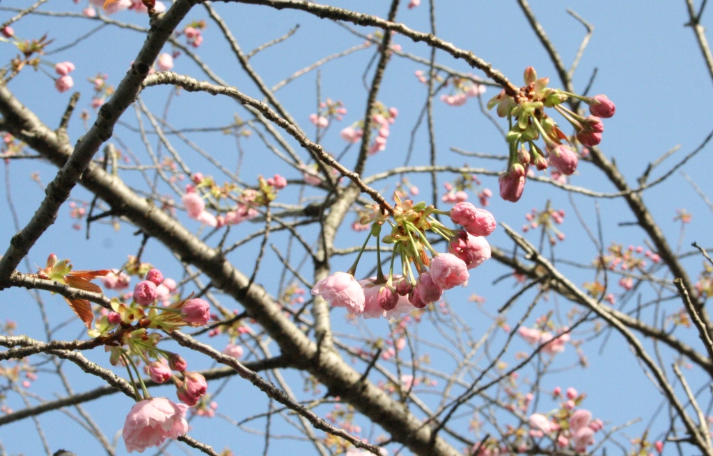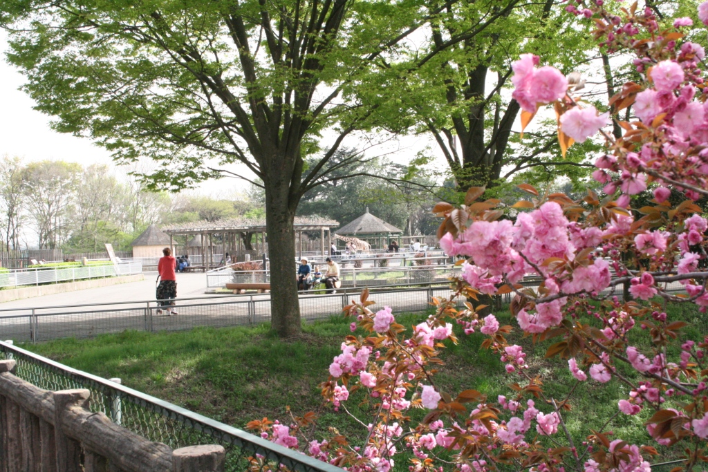 今日はとても天気が良く、絶好のお散歩日和でした。家族連れやお友達、カップルなどたくさんのお客様が園内散策を楽しんでいました。写真は午後2時ごろに撮影したものです。遠くにキリンさんが見える、アフリカサバンナの入口付近にある八重桜がそろそろ見ごろですよ!