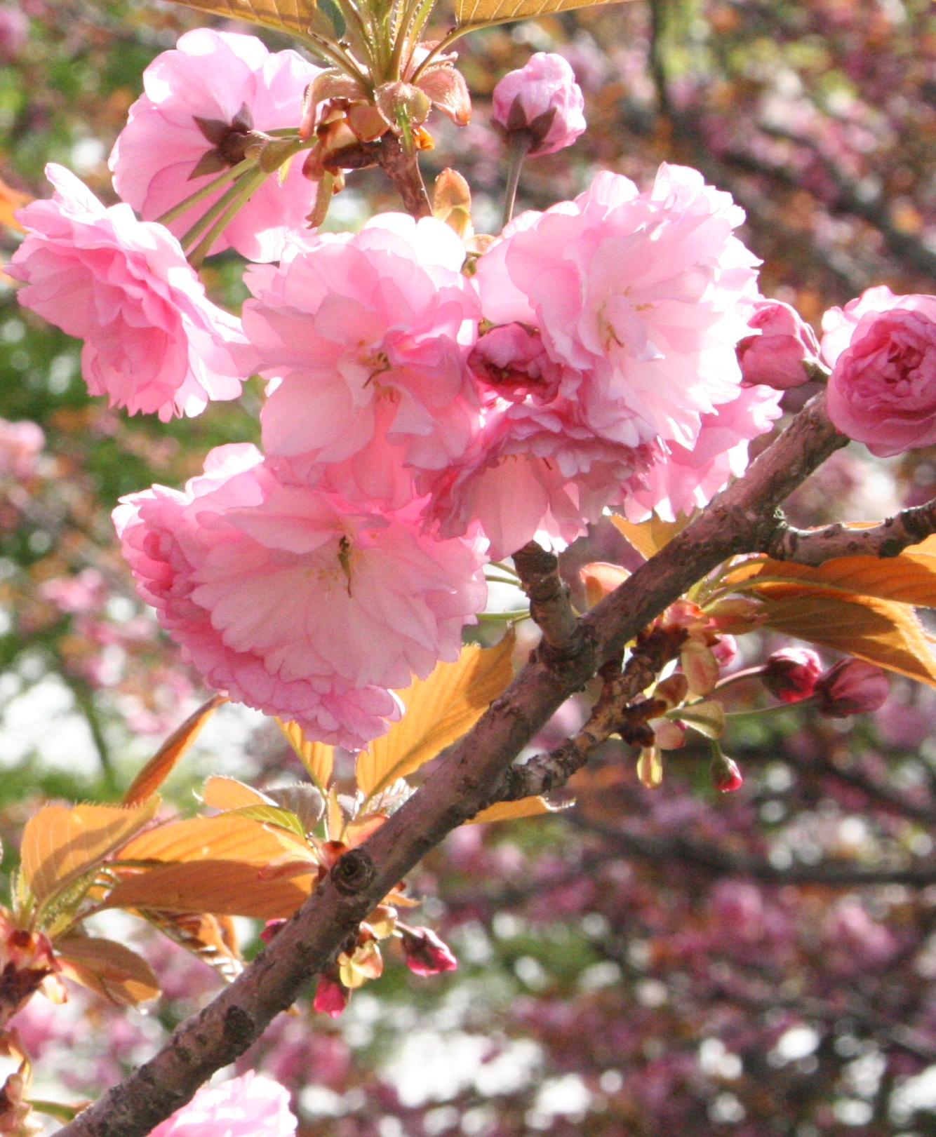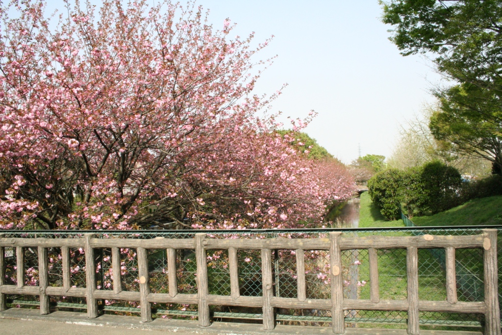 八重桜 アップ サバンナ(キリン)と八重桜 橋からの八重桜