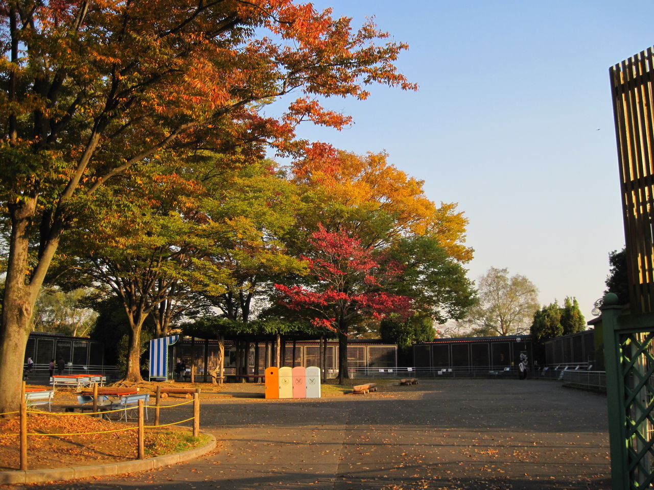 ケヤキの他にも、ハナミズキやイチョウ、リスザルの楽園前にはもみじが見られます