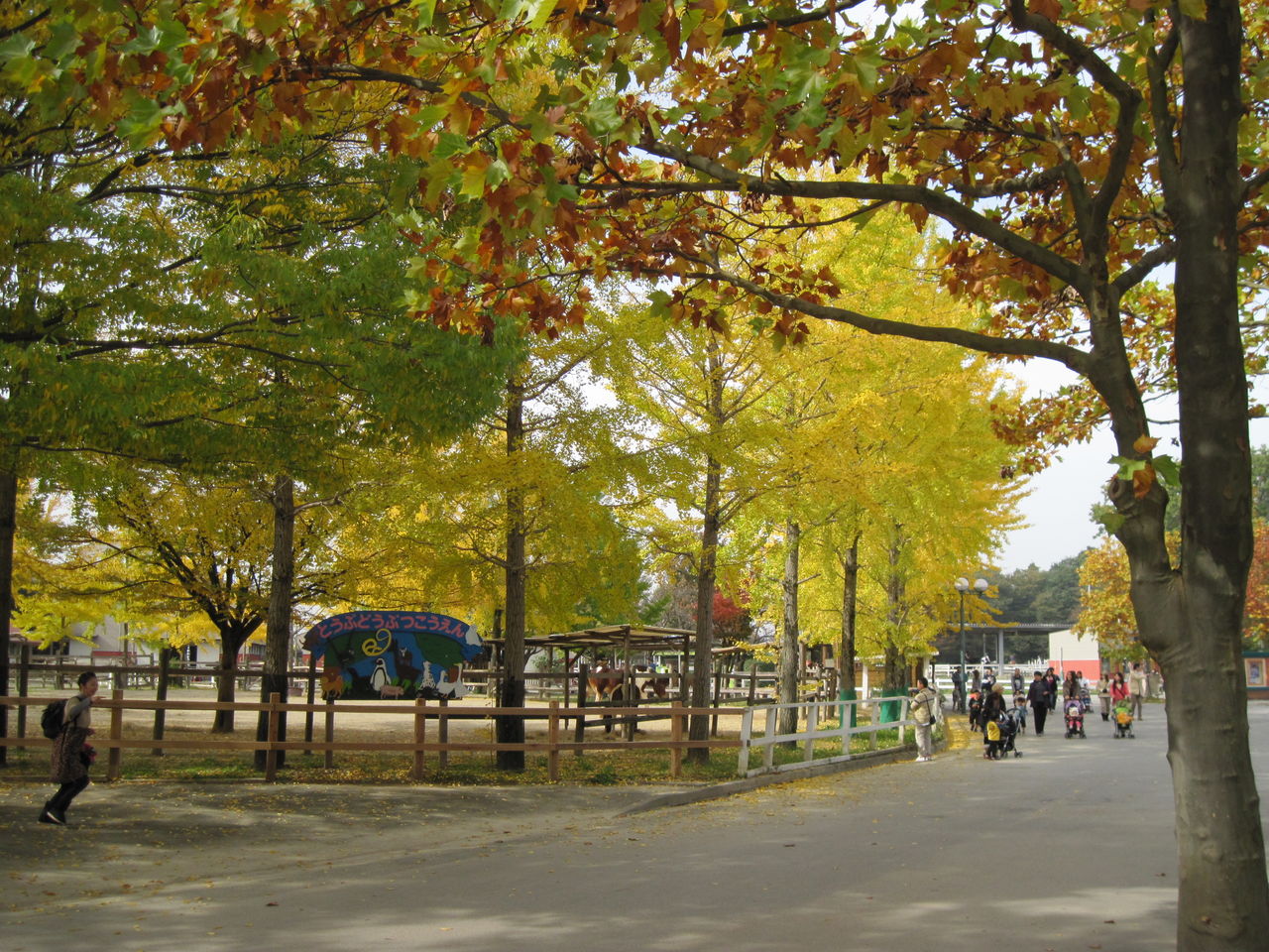 さて、動物園の紅葉はというと、ポニー乗馬コーナー前のイチョウがキレイに色づいてきています