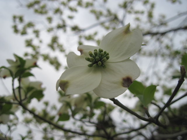 トッピー広場の一角にある庭桜が白い花を付け始めました