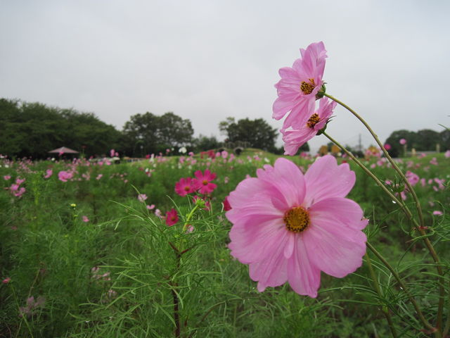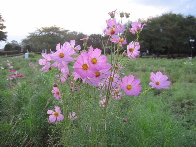 ちょっぴり曇り空ですが、コスモスたちは元気に咲いてくれています