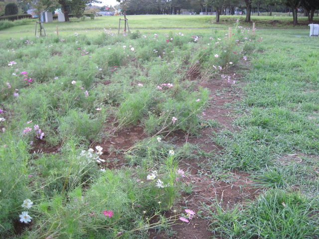 でも中のほうは、小さなコスモスがあちこちで育っているため