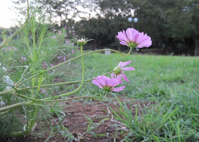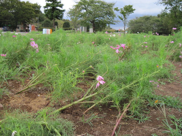 通路側にあるコスモスは出来るかぎり起こしてみました