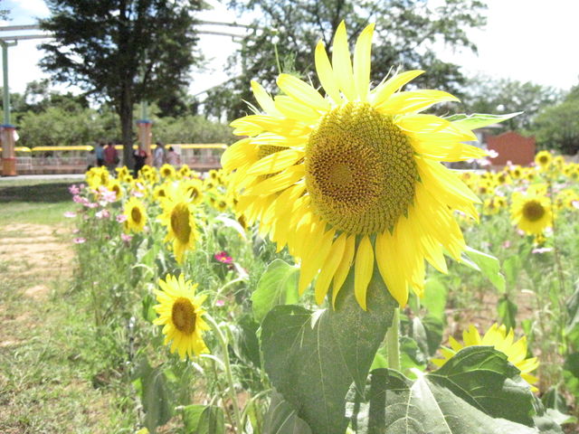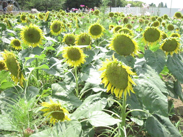 トッピー広場のヒマワリが満開です5 002 半分ずつ種類が違うヒマワリだったので、前回紹介したほうはもう見ごろを過ぎてしまいましたが、今度は残りの半分が満開になりました5 ヒマワリ2 今日は日曜日なので、動物パレードの合間に撮影しましたですので撮影は午後1時半ごろでしたが、花はみんな東を向いていましたヒマワリは太陽を追いかけて花の向きが変わると思っていたのですが、そういうわけでもないのでしょうか5 ヒマワリ1 ヒマワリ畑には通路もありますので、お花をバックに撮影など楽しめますよ
