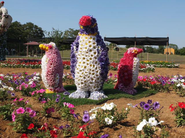 今年は足元がお花で囲まれていて、カラフルなペンギンたちが