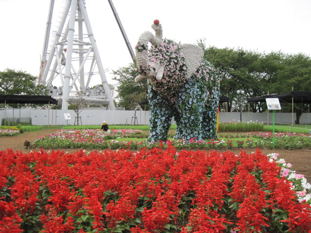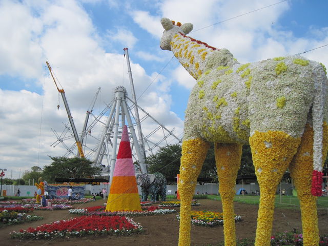 「フラワーガーデン」の会場である園内中央のトッピー広場では、着々と準備が進んでいますよ
