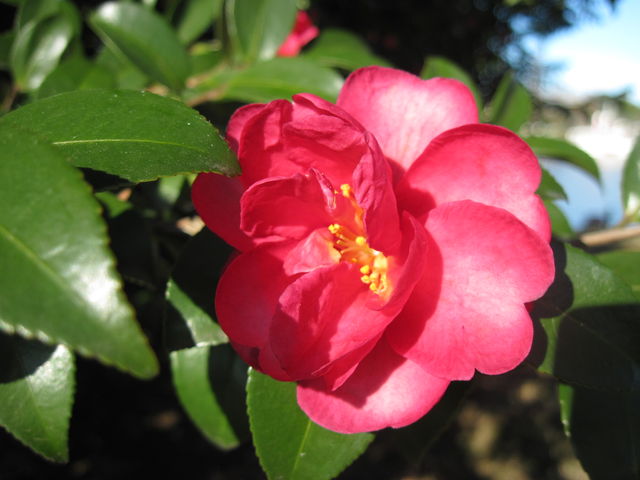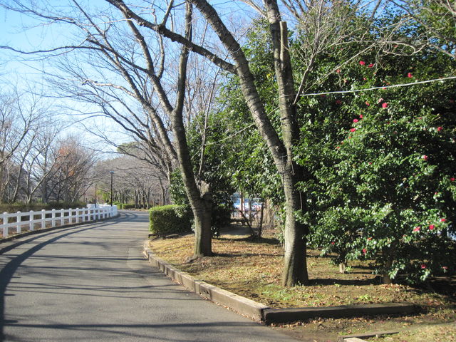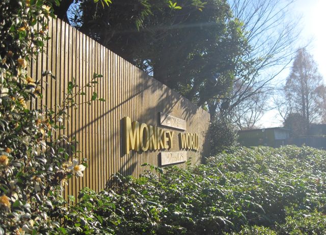ちなみにモンキーワールドの看板横には一重咲きのサザンカもあります