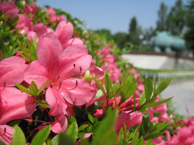 東ゲートから入ってすぐの池周りでは、ツツジがそろそろ見ごろです
