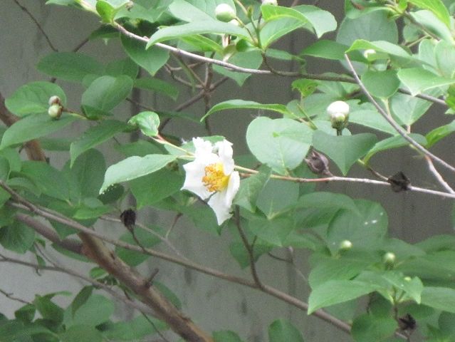 31 ナツツバキ1 白い花がポツポツと開花してきました
