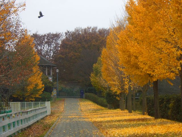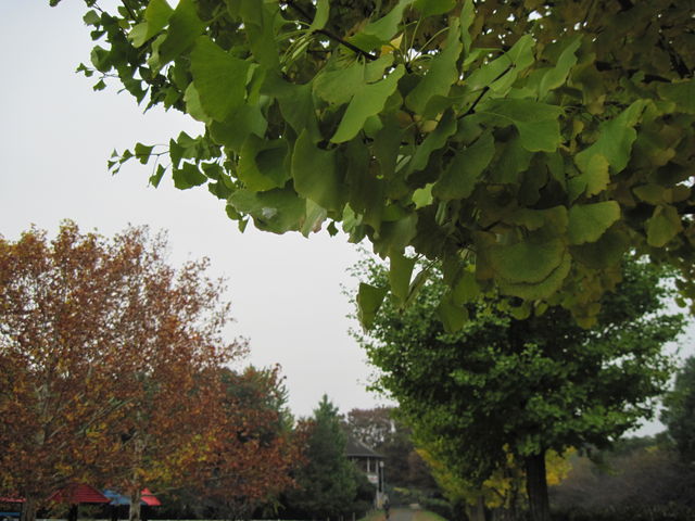 ケヤキは赤くなっていますが、イチョウはこれから黄葉し始めるような感じです
