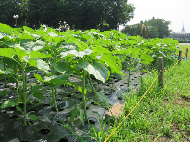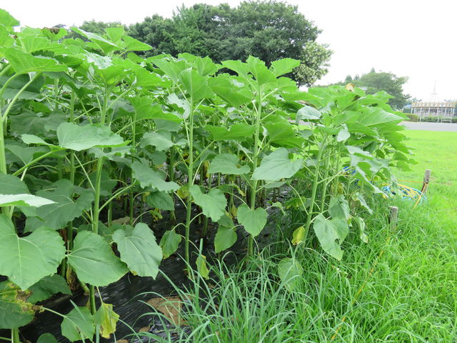 今日も朝から暑くなり、ヒマワリはぐんぐん成長中です