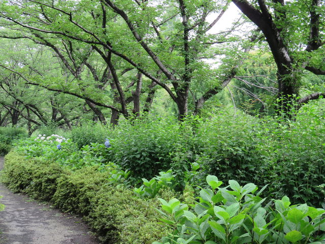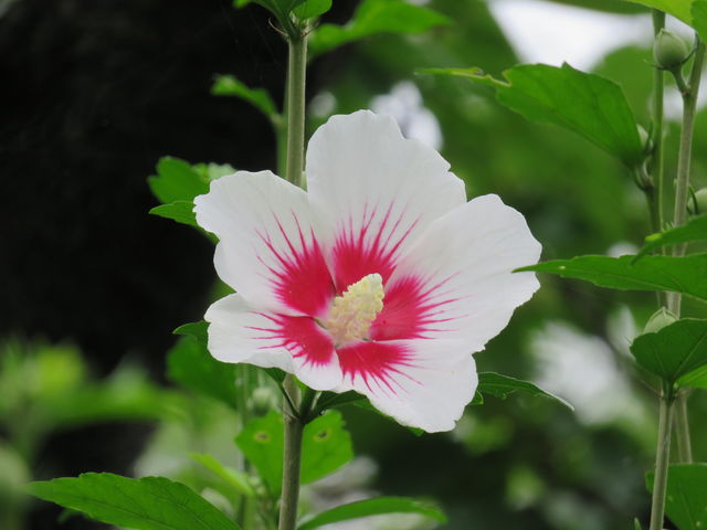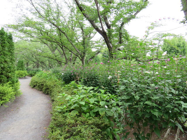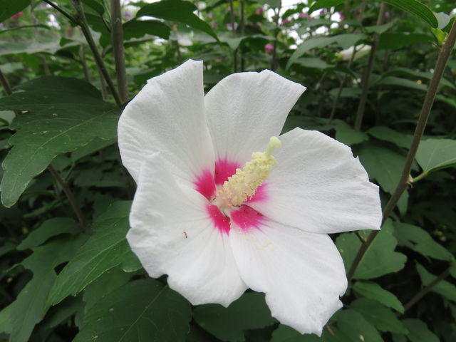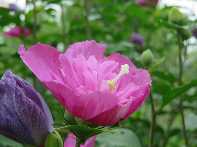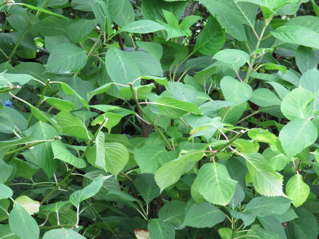 そのアジサイの後ろから伸びているムクゲの様子ですが...