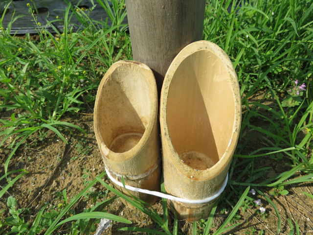 ヒマワリ畑の通路に設置している竹灯籠の灯りで