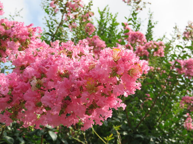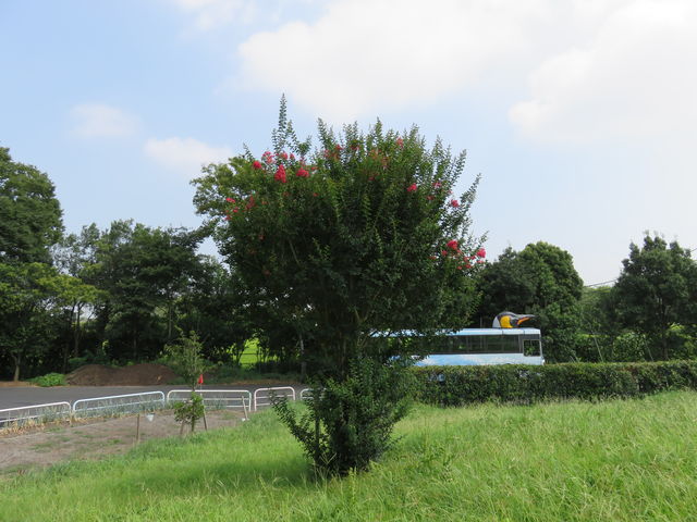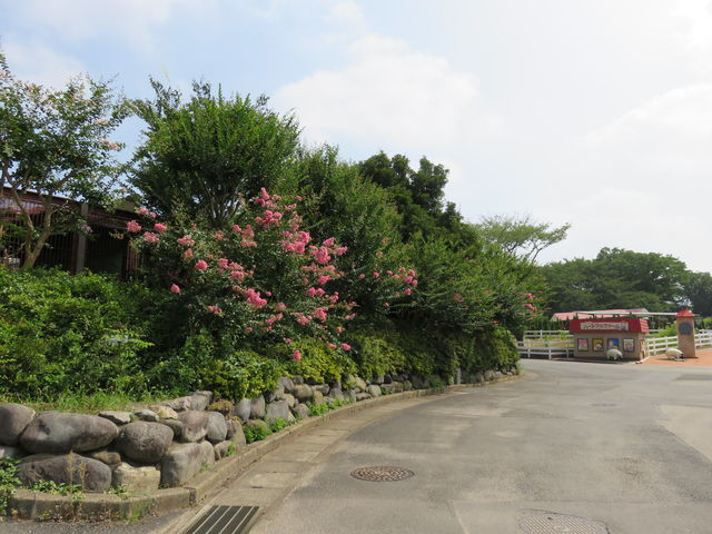 サルスベリは、ハートフルファームの入口前(キャットワールド側)