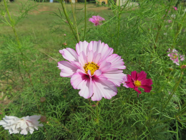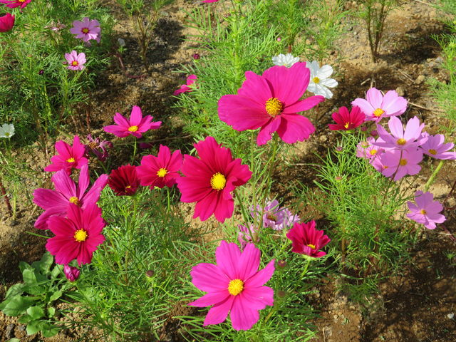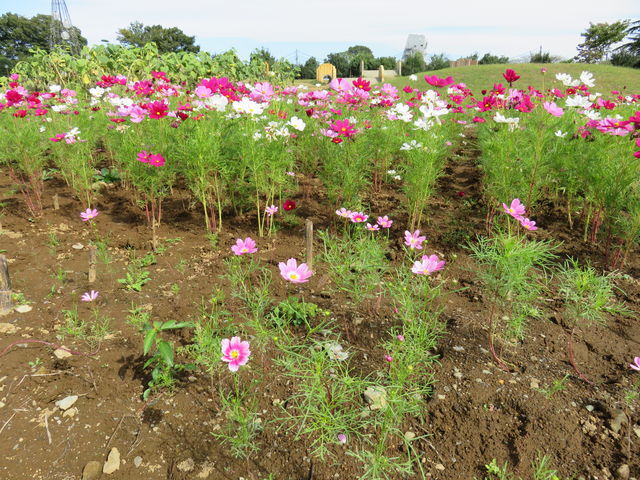 今年のコスモスは、夏に実施したヒマワリ畑や昨年のコスモス畑に比べて