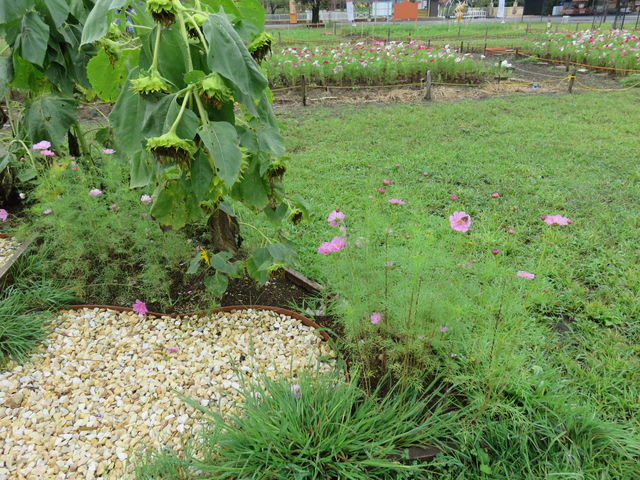 さらに奥の方にある花壇では、ヒマワリに目が向いてしまいそうですが