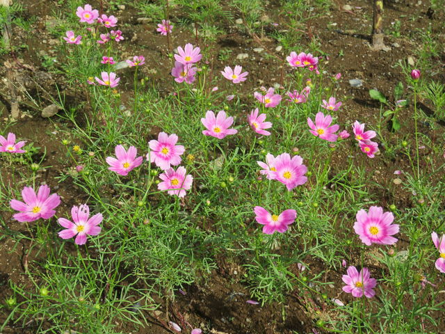 昨年はコスモスがしっかり育ったころに台風が来てしまいましたが
