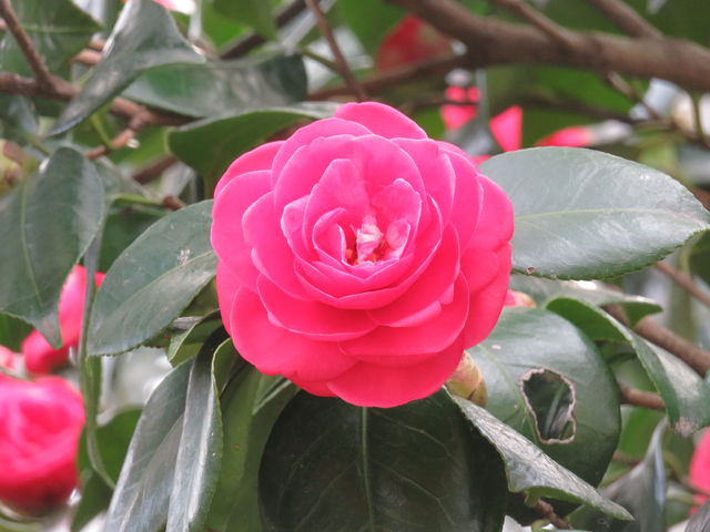 ツバキは園内の生垣として各所で見ることができます