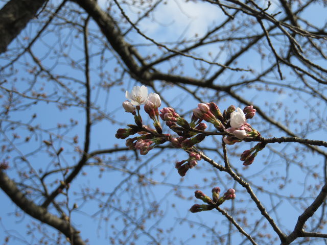 日当たりが良いのか、ここだけ他より早く5分咲きくらいになっています