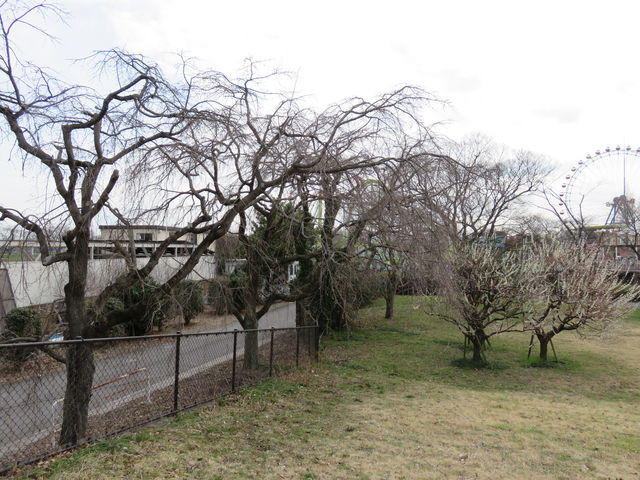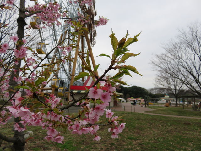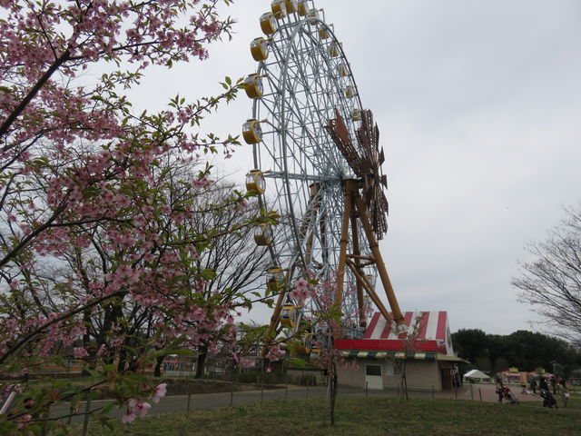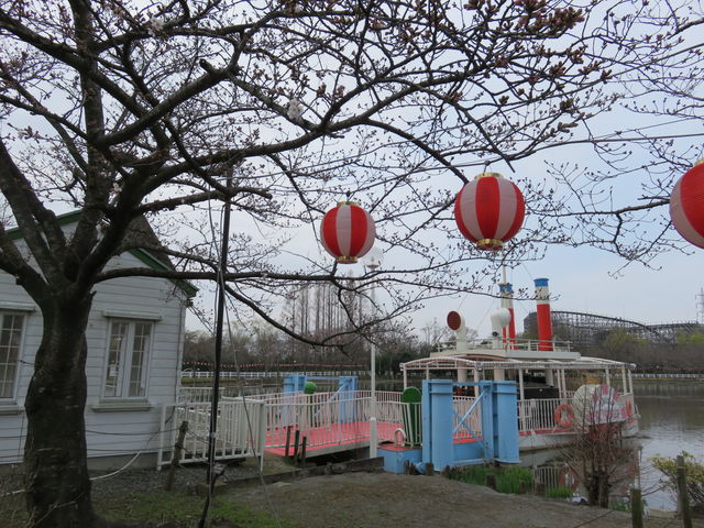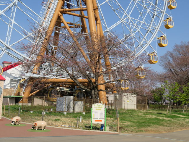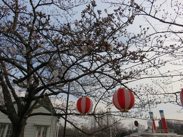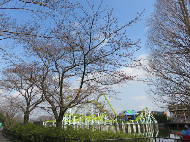 アトラクションのそばにも桜がありますが、