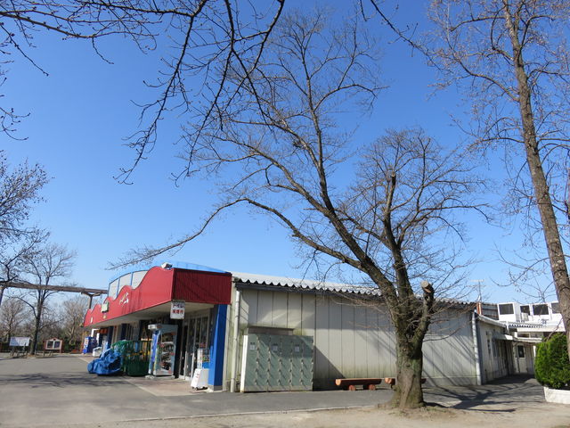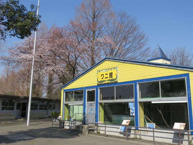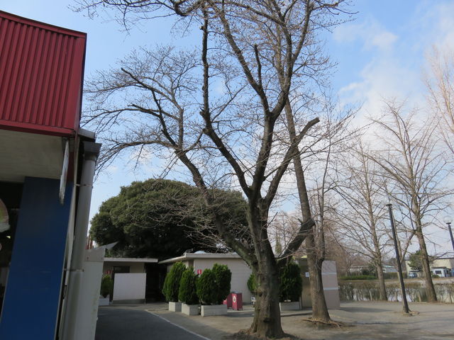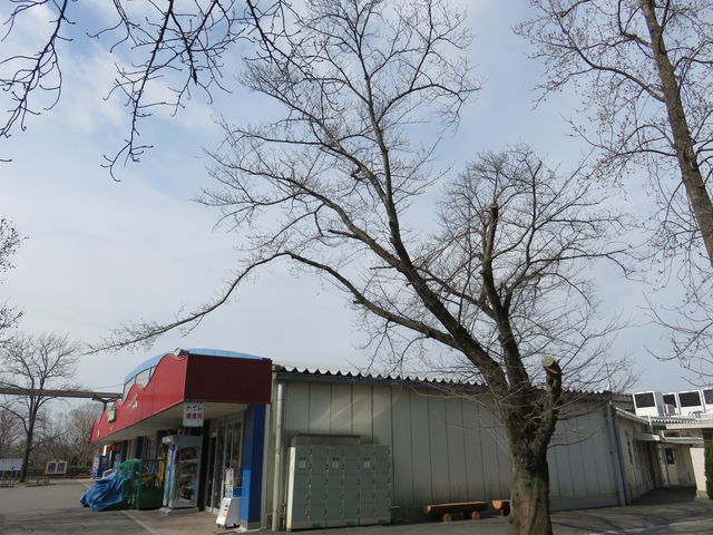 動物園エリアにある無料休憩所とワニ館の間にある桜が