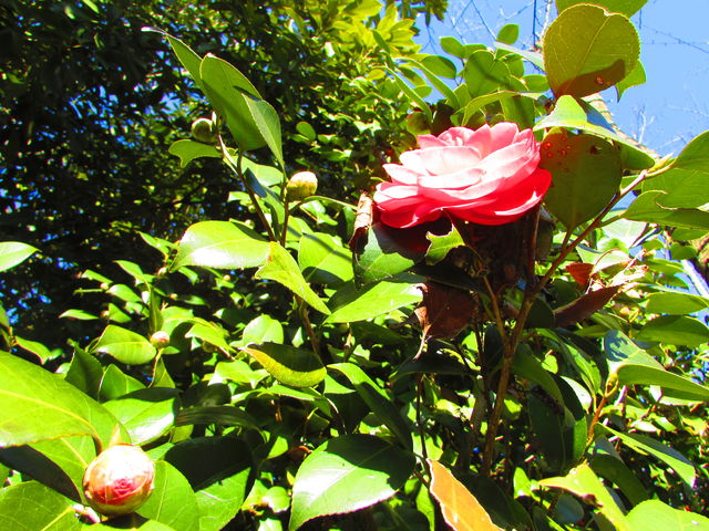 前回つぼみだったカンツバキも、色鮮やかに開花しました♪