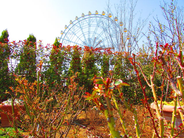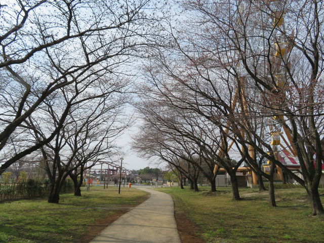 園内の真ん中にある観覧車「エマさんのチーズ風車」周辺の桜は・・・