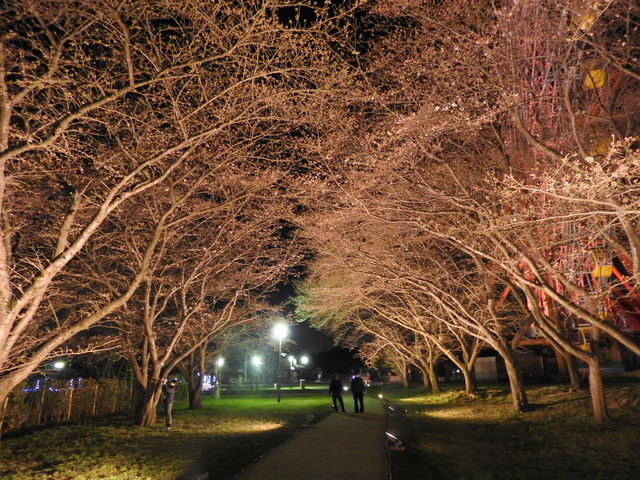 夜桜鑑賞には観覧車「エマさんのチーズ風車」や、