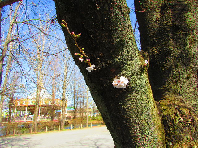 では、遊園地エリアの「ゲームセンターカーニバル」横にある桜はというと・・・