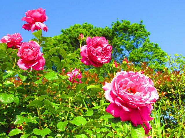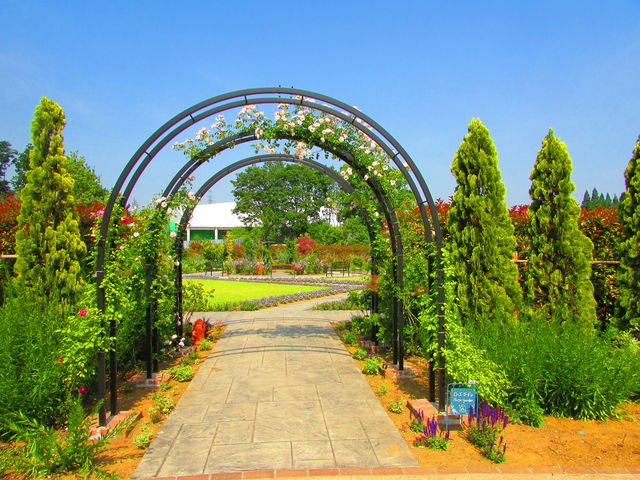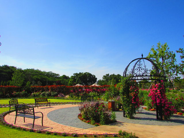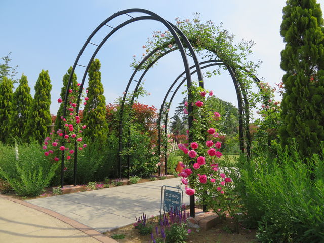 ハートフルガーデン内のローズガーデンには、様々なバラが咲いていますが