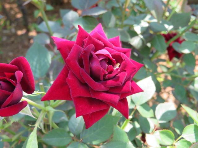 ローズガーデン入口では「ガートルートジェキル」が満開となっています☆