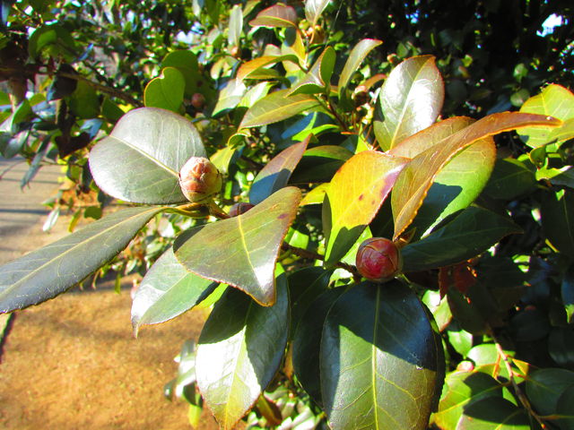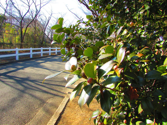 白鳥の池周辺では、椿(つばき)の花がつぼみを付け始めました♪
