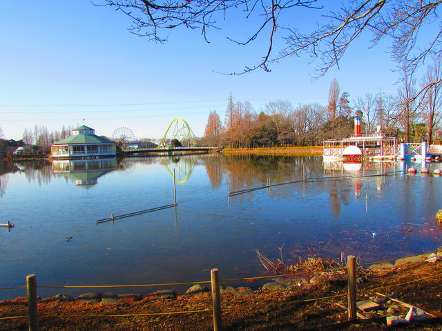 気温が低い日も続き、東ゲート前の白鳥の池は