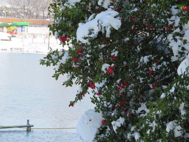東ゲート近くの、白鳥の池周辺にある「カンツバキ」は