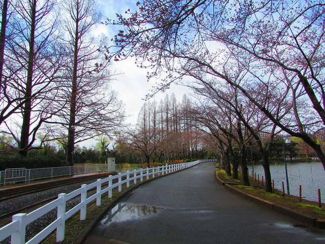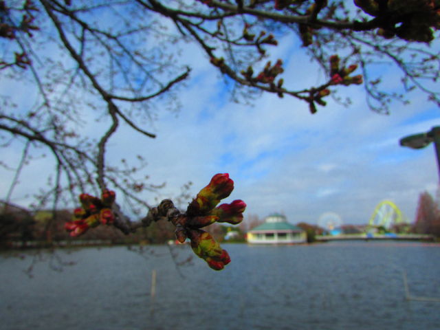 カルーセルウォーターリリーの横の桜も 三分咲きくらい です