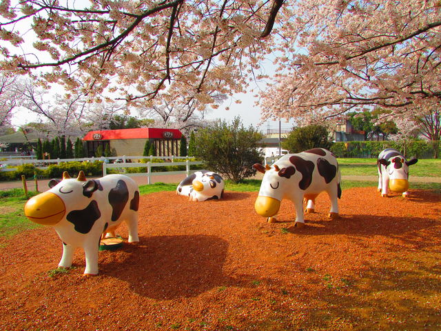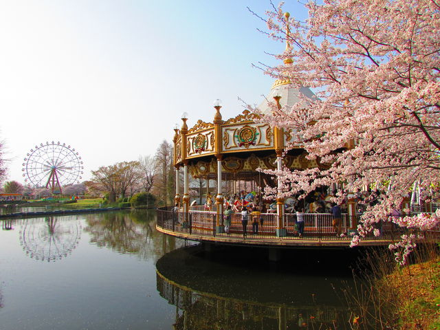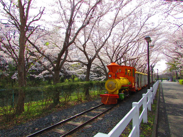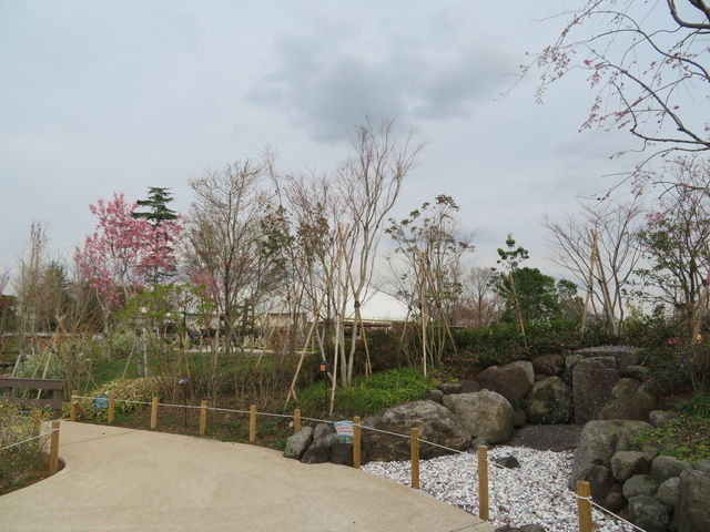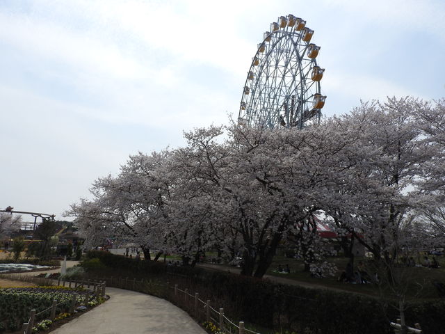 枝垂桜が見られる場所は、動物園と遊園地の間にある
