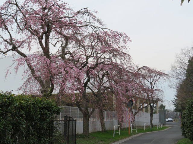 上の画像の、真ん中の木が枝垂桜、右側の木は染井吉野です