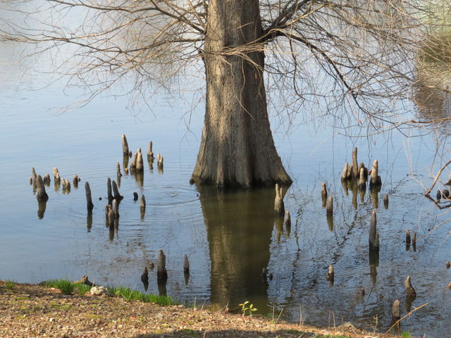 ちなみに、池の中から生えている木は、落羽松(ラクウショウ)という木です