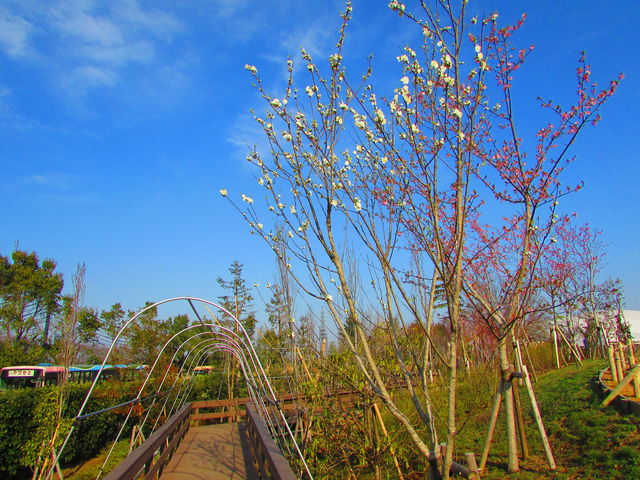 花木の小路では「陽光桜」や「花桃」が見ごろを迎えていますよ