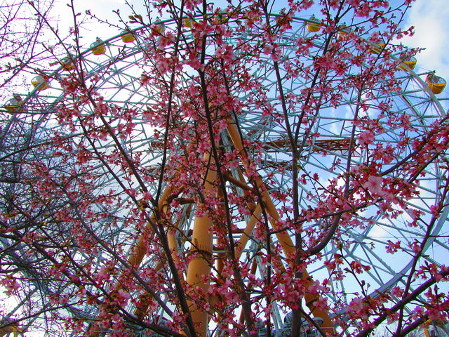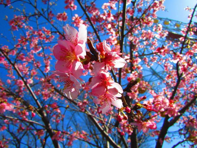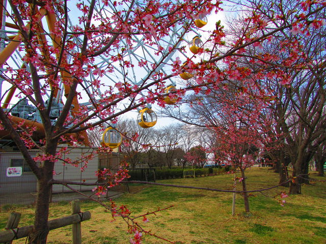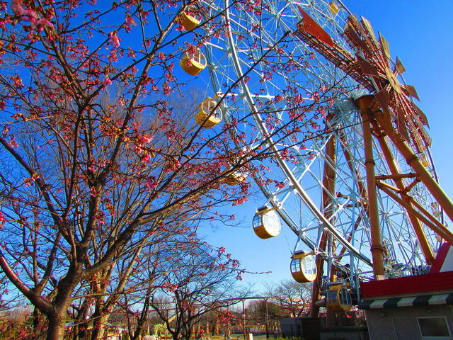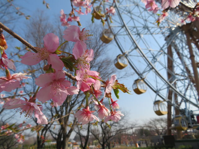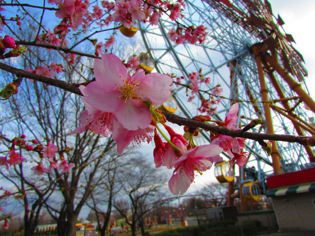 さて、観覧車「エマさんのチーズ風車」周辺の「河津桜」は
