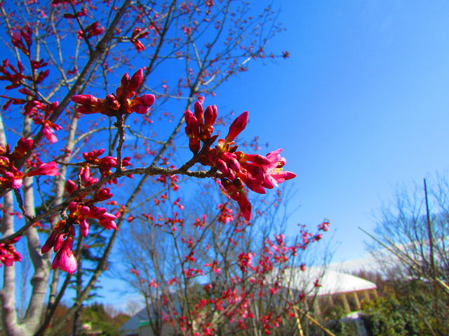 オカメザクラのつぼみは、ハッキリとした元気な色合いです!