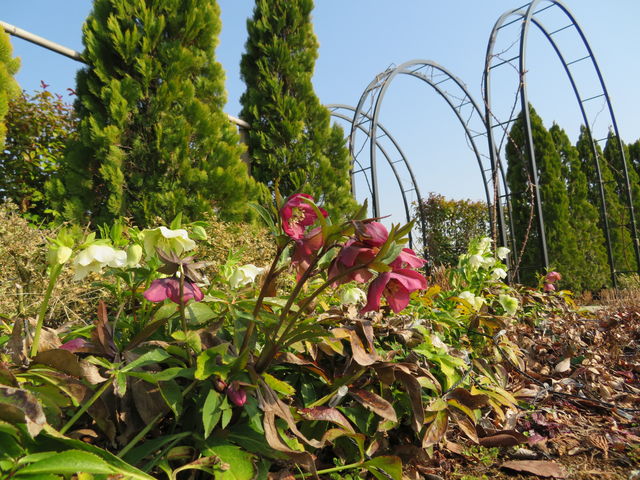 ローズガーデン入口の「クリスマスローズ」は