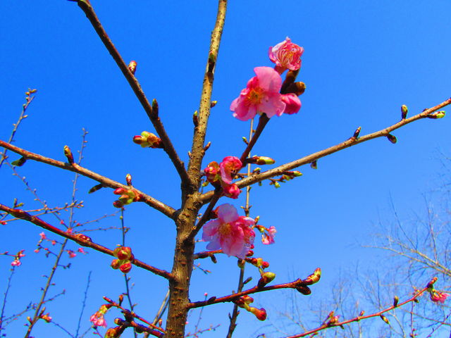 ピンク色の河津桜も、明日は更に咲き進みそうですね♪